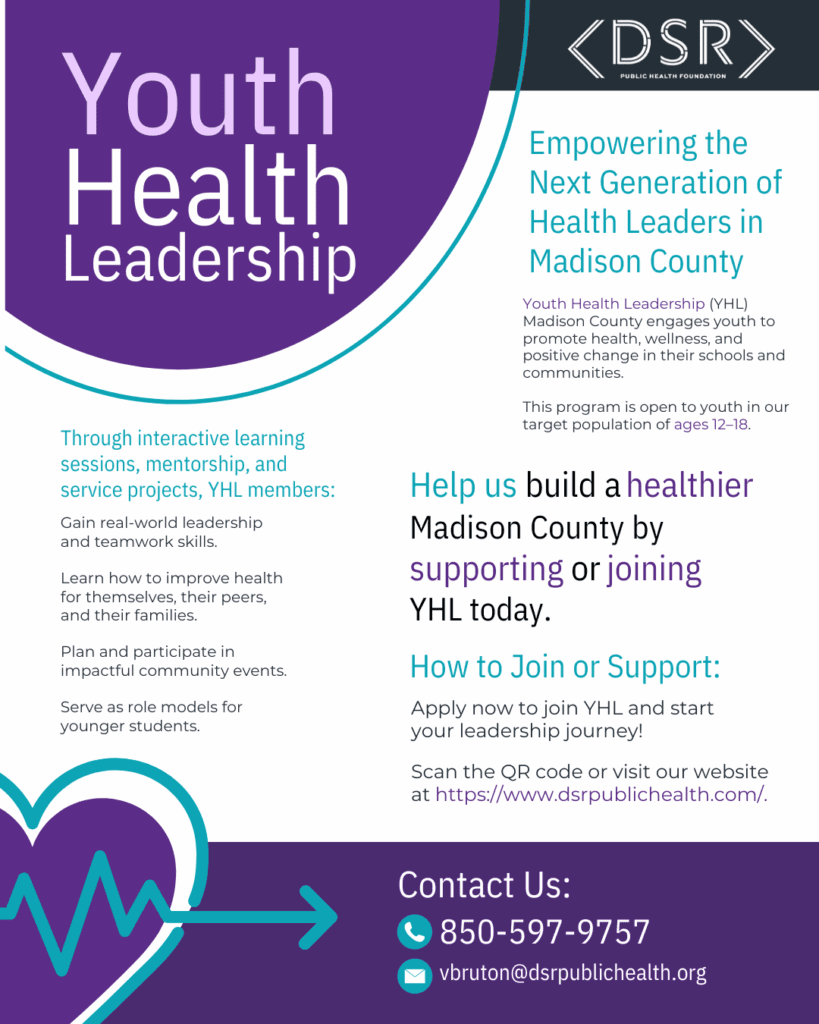 Join DISC Village in supporting and spreading the word about the Youth Health Leadership. Youth Health Leadership (YHL) Madison County engages youth to promote health, wellness, and positive change in their schools and communities. This program is open to youth ages 12–18.